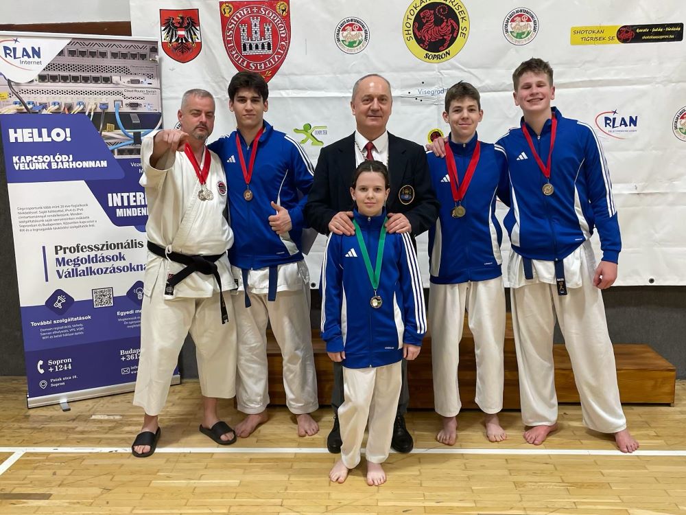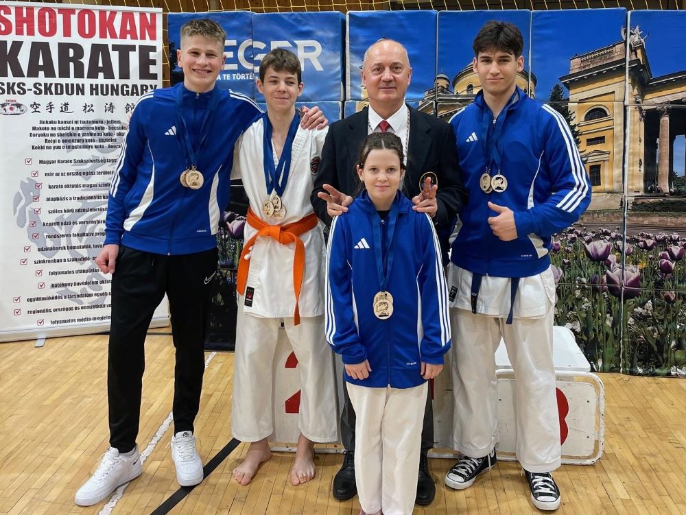 2025.06.07. Shotokan Karate Liga Nemzetközi Bajnokság Eger >kép> A Shotokan karate ünnepe volt az egri Kemény Ferenc körcsarnokban, ahol 3 ország (magyar, román és szerb) 30 egyesületének 210 sportolója szerepelt, amelyet természetesen megtisztelt jelenlétével Dr. Mészűros Jűnos a Magyar Karate Szakszövetség Elnöke is. A Dombóvári Karatesuli csapatát 6 fő képviselte, akik az erős mezőnyben is kiválóan teljesítettek, melyet az összességében megszerzett 3 arany-, 2 ezüst- és 3 bronzérem is bizonyít. Külön öröm volt számunkra, hogy minden sportolónknak sikerült ezúttal az éremszerzés is