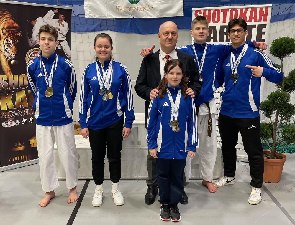 2026.02.14. Karate Diákolimpia Országos Elődöntő és XVI. Hódos Imre Karate Kupa Hajdúnánás >kép> A versenysorozaton 24 egyesület 260 versenyzője vett részt, amelyet természetesen megtisztelt jelenlétével Dr. Mészáros János a Magyar Karate Szakszövetség Elnöke, a Nemzeti Versenysport Szövetség Elnöke is. A Dombóvári Karatesuli egyesületet 5 fő képviselte, akik közül ezúttal is mindenki kiválóan szerepelt, amit az összességében megszerzett 7 arany-, 9 ezüst- és 2 bronzérem is bizonyít. A kiemelkedő teljesítmény további jutalma, hogy mind az öt dombóvári fiatal ezzel bejutott a március 07-én Jászberényben megrendezendő Karate Diákolimpia Országos Döntőjébe