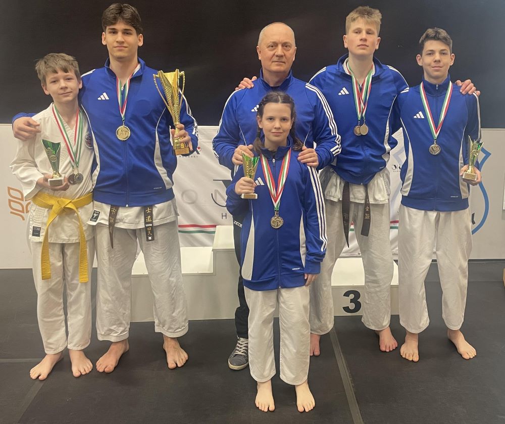 2025.02.15. XV. Hódos Imre Kupa Hajdúnánás >kép> 29 egyesület 254 indulója között volt hat főből álló csapatunk, akik ezúttal is kiválóan szerepeltek, melyet az egyéniben megszerzett 5 arany-, 5 ezüst- és 1 bronzérem, valamint a 2 csapatban elért első helyezés is bizonyít, ami a ponttáblázaton a hetedik helyet jelentette számunkra.